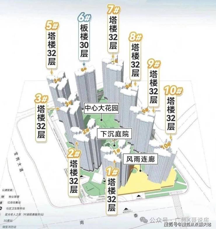 建筑层数:8 栋 32 层塔楼,1 栋 30 层板楼