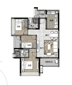🔹95-120㎡三房:经典竖厅设计,客厅连接阳台,阳光能直接洒进屋里,厨房挨着餐厅,端菜超方便,长辈带娃也省力,每个房间都有足够采光,不会出现阴暗角落。