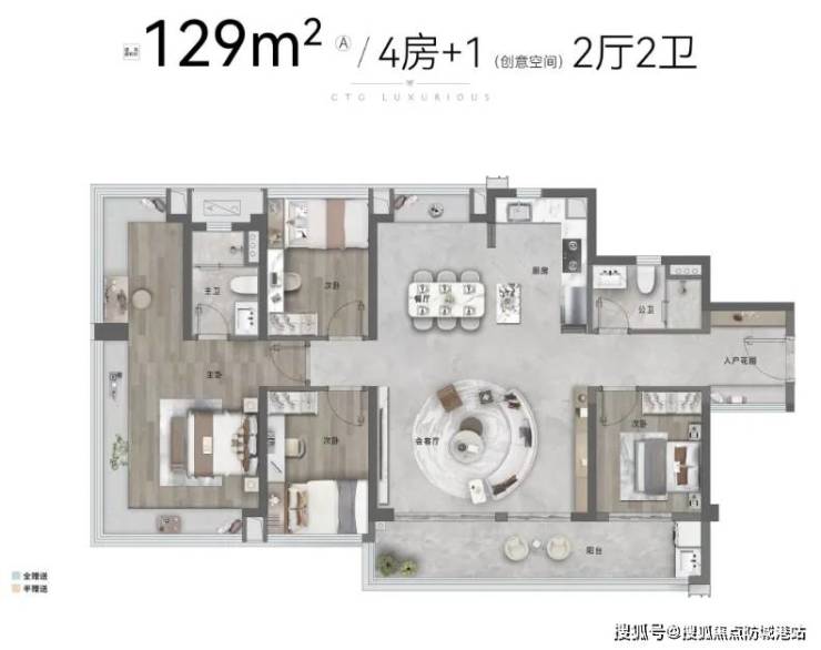 129㎡四房两卫:总价315万起,南北通透,百米楼间距,享超1000㎡酒店度假式泛会所。