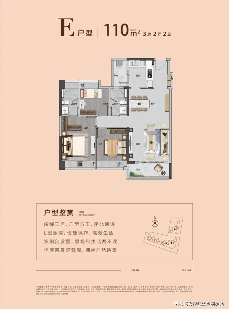 户型多样:产品建面约86-130平方米三至四房,L型建筑布局,超宽楼距,采光充沛。