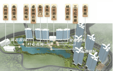 此外,世界大观板块还拥有得天独厚的生态资源。板块内三山三湖环绕,湖面面积达6.4万平方米,相当于3.5个天河公园、8.6个珠江公园。映辰湖、太阳湖、月亮湖等湖泊与周边的山林林海相互映衬,构成了罕见的低密湖山社区群。这种优越的自然环境,为居民提供了休闲康养的理想场所,提升了居住的舒适度与幸福感。