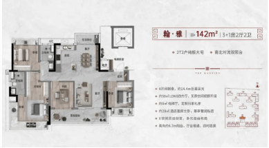 在户型设计上,翰林世家提供了131平米、141平米、171平米及220平米等多种面积段的产品,全面覆盖刚需起步、首改进阶及终极改善等不同阶段的置业需求。其中,131平米户型实现了3+1房2卫的格局,南北通透双阳台设计,南向约6.9米的全屏观景阳台,将室外的自然景观引入室内;141平米户型则拥有4开间朝南的奢阔布局,约14.4米的全面屏采光面,搭配约28平方米的酒店式套房主卧,极大提升了居住的尊贵感;171平米户型更是将南向奢阔双主套与270度环幕大视野完美结合,4开间朝南带来约17.5米的全面屏采光,让每一次呼吸都充满阳光的味道;而220平米的顶豪产品,则以极致的空间尺度与圈层定位,成为花都塔尖人群的身份象征。