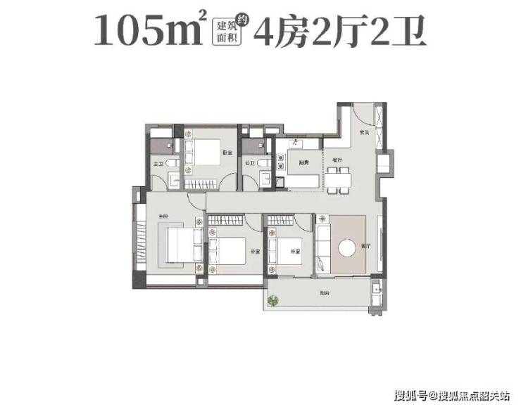 105平方米四房两卫:这是为进阶家庭量身打造的舒适户型。进门即是独立的入户玄关,增加了收纳空间,也提升了归家的仪式感。客厅采用了可拓展设计,可以根据家庭需要灵活调整空间布局。三面采光加上南向四开间,让室内充满了阳光的气息。阔绰的阳台设计,不仅可以晾晒衣物,更可以作为休闲观景的平台,品茶读书,俯瞰城市美景。