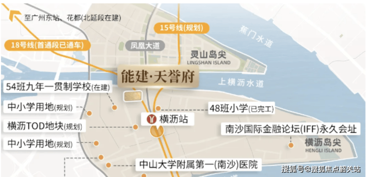 项目位于南沙横沥岛核心江景区域,直线距离珠江不足150米,是广州罕见的头排江景住宅。项目通过高标准住宅产品的导入,带动周边环境优化和区域价值提升。毗邻规划中的横沥TOD综合体,未来商业、休闲及公共配套完善后,将形成片区超级生活圈,同时为广州江景住宅市场树立标杆,实现区域价值的持续增值。