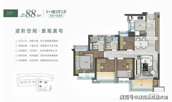 在寸土寸金的广州,如何用有限预算实现“一步到位”的家庭居住需求?云城上品给出了极具创新性的答案。项目一期主力户型为72㎡四房一卫与88㎡四房两卫,实用率高达95%至100%,突破传统小户型的空间局限。