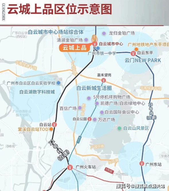 云城上品最突出的核心竞争力,在于其无可复制的轨道交通优势。项目直接坐落于18号线与22号线交汇的白云城市中心站之上,两条线路均为设计时速160公里的高速地铁,堪称“地铁中的高铁”。从这里出发,仅需3站即可抵达广州东站,4站直达珠江新城CBD,无论是前往天河金融城、琶洲会展,还是南站枢纽、南沙新区,皆可实现快速接驳,极大缩短跨区通勤时间。