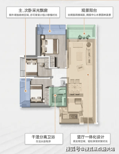 低梯户比优势:相比传统的 2 梯 4 户或 3 梯 6 户,2 梯 6 户在保证效率的同时,也降低了公摊面积,提高了得房率。这是一种在效率和实用性之间取得的最佳平衡。