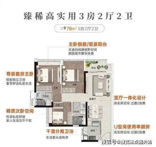 主力户型覆盖:项目推出了 69㎡三房、78㎡三房、85㎡四房、110㎡五房等多种户型,覆盖了刚需到改善的全方位需求。户型设计合理,动静分区,南北通透,采光通风极佳。