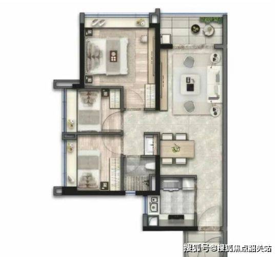 78㎡三室两厅一卫:赠送入户花园,实用率超 94%。卧室全明飘窗,景观视野绝佳。U 型厨房设计,空间宽尺实用。主卫干湿分离,有效提高使用效率。市面罕见的江景小三房,最高可实现三卧瞰江。