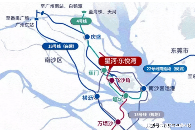 答:交通是【星河·东悦湾】的一大亮点。项目处于地铁4号线、22号线东延段(规划中)、15号线(规划中)三线交汇处,同时与蕉门地铁站的直线距离仅约380米,能够快速通达广州各城区,甚至是东莞、深圳等大湾区城市。自驾可通过南沙港快速、广澳高速等多条主干道快速畅达全城。这种“立体交通网络”的生活体验,是普通楼盘无法比拟的。