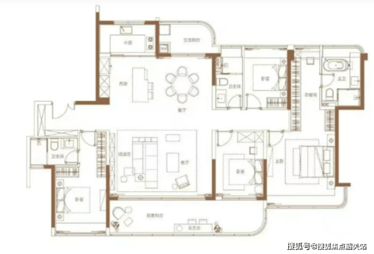 180-207㎡江景大平层:进阶户型,同样注重细节设计,精研都会理想人居的空间细节,为业主臻享惬意的品质生活。IMAX巨幕会客聚厅,5面宽布局,全家生活聚合场。南北通透双阳台设计,瞰景阳台约6.9米。五开间朝南,约15.6m采光,阳光流连。