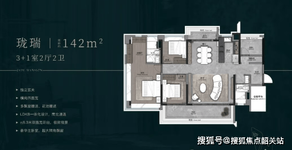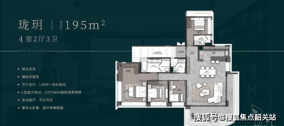 而建面约131㎡的户型,则刷新了琶洲小面积段的天花板。入户设计了极具仪式感的拐角玄关,南北对流双阳台,南向阳台长度更是达到了惊人的7.5米!搭配LDKG一体化设计,彻底突破了空间局限。主卧配备L型衣帽间与环幕大飘窗,让您躺在床上便能欣赏窗外的“巨幕4K景观大片”。正如一代文豪福斯特所言:“窗外的风景,决定了房子的价值。”珑璟台用实打实的空间尺度,证明了奢居不仅是内部的舒适,更是对外部稀缺资源的极致占有。