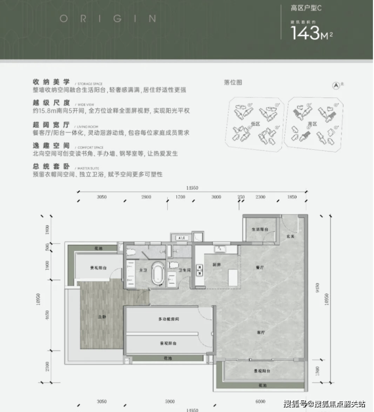 户型设计注重采光和通风,通过全景阳台和落地窗设计,让自然光充足进入室内。立面采用玻璃与铝板组合,整体建筑现代感与国际化审美兼备。室内装修及空间布局注重功能性与舒适度结合,公共区域开敞而连贯,卧室区域私密且安静,为家庭成员提供高品质居住体验。