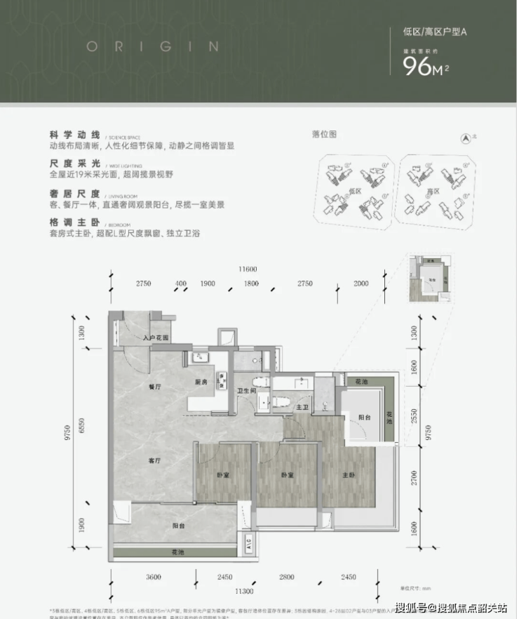 万科理想花地傲璟位于荔湾区花地湾地铁站500米范围内,占据核心城市节点,项目定位为高品质改善型住宅,充分兼顾城市便利与生态宜居的双重需求。整体规划采用低密度高品质住宅模式,建筑采用高低分区设计,兼顾通透采光和空间利用效率,同时保留社区绿化和休闲空间,形成宜居生活氛围。