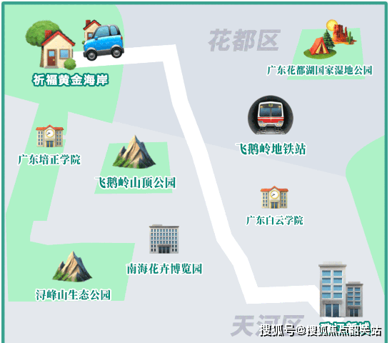 该项目地理位置优越,距离广州地铁9号线飞鹅岭站非常近,实测仅需1小时即可到达天河区。此外,通过发达的立体交通网络,包括高铁广州北站等,可以快速到达白云机场、以及粤港澳大湾区的其他重要城市,出行方式随心选择,极大提升了生活的便捷性。
