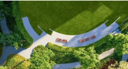 项目园林总面积约 3.3 万 m²,相当于 5 个足球场大小,整体抬高约 18 米,并打造四层阳光车库。园林以引山入园为理念,种植 46 种植被,构建栖山七境主题园林,为全龄段居民提供交流休闲空间。同时,设置三重大堂门厅,采用酒店式归家礼序,彰显尊贵。全龄段架空层则为邻里交流及社区休闲提供了更多场所,提升社区生活的趣味性与互动性。