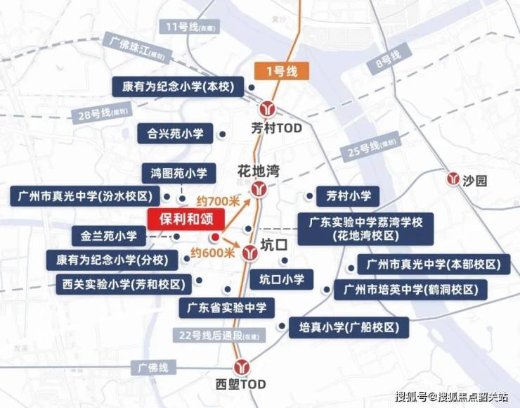在教育资源方面,保利和颂项目自身配备了一所9班幼儿园,距离花地湾省实学校直线距离500米。周边还有真光中学、康有为小学、培英中学等名校。值得注意的是,荔湾最近出台了优化教育集团布局相关政策,全区44所公办小学都会有调整,村小将逐渐消失。具体的入学政策还需以教育局的公布为准。