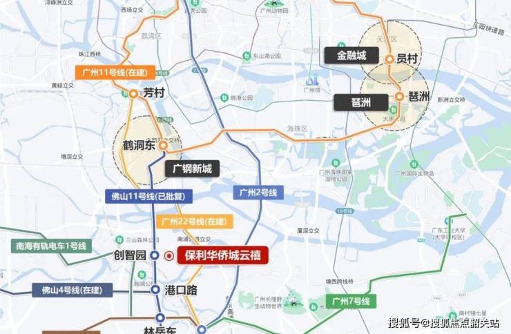 项目地处三山新城,南海东部核心区域,地理位置优越,紧邻南海、顺德与广州荔湾、番禺多个行政区交界处,天然形成广佛同城的关键节点。交通便捷,已运营的佛山地铁2号线以及南海新交通线路为居民出行提供便利,未来4号线和7号线规划将进一步增强区域连接性。佛山11号线距离项目仅约500米,几站即可抵达广州重要交通枢纽,极大缩短跨城通勤时间。五条桥梁连接荔湾、海珠、番禺和千灯湖,交通网络密集,区域内通勤效率高,吸引大量广州购房需求。