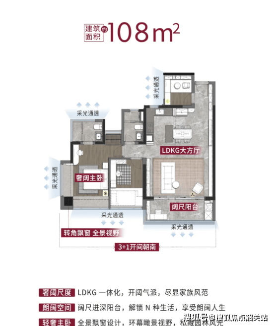 户型设计亮点突出,多个户型采用南北对流双阳台双主套设计,足以满足三代人共同居住的需求,既保障了家庭成员的居住私密性,又能促进空气流通,提升居住舒适度。LDKG一体化设计打造超大方厅,将客厅、餐厅、厨房、阳台连通,形成开阔的社交空间,为家庭互动提供充足场地。主卧配置270度宽阔飘窗,不仅扩大了采光面,让房间更显明亮通透,还为业主提供了个性化的使用空间,可自由设置梳妆台、衣柜甚至投影幕。