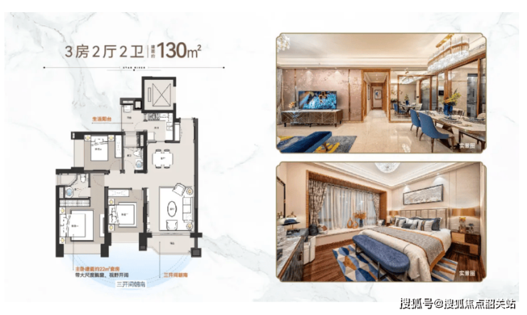 130㎡户型亮点:客厅连接南向阳台,视野开阔,采光充足;主卧为南向套房,配备独立卫生间和大飘窗,私密性强;两个次卧空间宽敞,可满足老人、小孩居住需求。