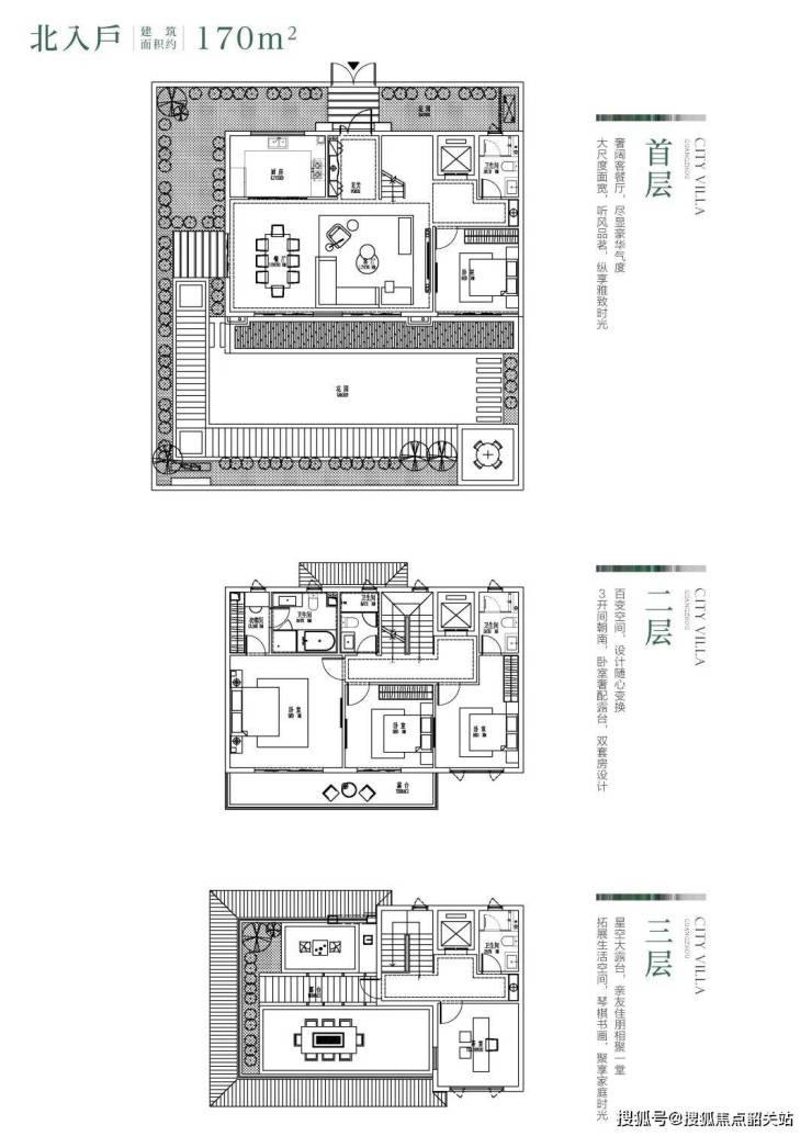 4.别墅户型设计独具匠心,首层拥有约140-170㎡的花园赠送,二层设有主卧套间和大阳台,三层带有星空大露台,多功能房间等,为居住者提供宽敞舒适的居住空间。