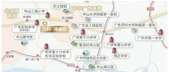 如果说地段是房子的骨骼,那么教育就是灵魂。万科·瑧樾府的最大王牌之一,便是“省实+中山三路小学”的双一流学区组合。项目东侧一路之隔即是广东实验中学(省实)本部,这所百年名校不仅是广东省重点中学,更是清北复交的“常客”,高考重本率常年稳居全市前三。西侧对口的中山三路小学,同样是越秀区老牌优质公办,师资稳定、升学口碑佳。此外,1公里范围内还聚集了东风东路小学、文德路小学等省级名校,以及广州市第十六中学、第十三中学等优质初中资源。在“多校划片”政策逐步推进的背景下,能明确锁定省实+优质小学的双学位组合,已成稀缺资产。尤其2025年广州中考改革深化,“指标到校”比例提升,优质初中的含金量进一步凸显。对于重视子女教育的家庭而言,瑧樾府不仅是一套房子,更是一张通往顶尖教育资源的通行证。