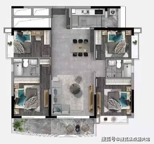 建面约131㎡户型,是项目的改善型主力户型,适合二胎家庭或注重居住舒适度的改善型家庭。该户型利用率很高,面向小区,为南向双阳台设计,大阳台连接客厅与主卧,采光和景观视野俱佳,站在阳台上,可直接俯瞰社区内2300平的泳池和儿童休闲空间等景观,享受惬意的居住体验;户型方正通透,南北对流,采光通风极佳,室内时刻保持干爽通透;动静分离设计,休息区与活动区分开,保障了业主的居住私密性;多飘窗设计,增加了空间利用率,也让业主能够欣赏到窗外的美景;户型布局合理,房间空间开阔,能够满足二胎家庭的居住需求,无论是老人居住、孩子成长,还是日常休闲,都能轻松满足。