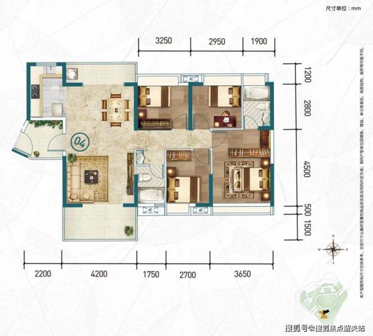 3栋04户型 131平米 4房2厅2卫1厨 平层 南北