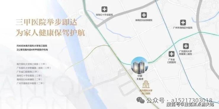 中旅天宸府周边医疗资源密集且优质,为全家健康提供全方位坚实保障。项目步行可达南方医科大学珠江医院、广州医科大学附属第二医院、广州市红十字会医院等多家三甲医疗机构,医疗设备先进、科室设置齐全、医师团队专业,可提供全科诊疗、急诊急救、专科治疗、健康体检等全维度医疗服务。近距离优质医疗配套,让日常就医、健康护理、慢病管理等需求都能高效便捷解决,无需长途奔波,极大提升居住安全感与生活幸福感,为业主及家人的健康生活保驾护航。