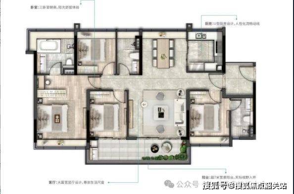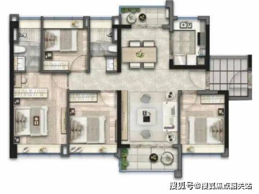 140㎡四室两厅三卫:采用方正宽奢布局,配备巨幕观景阳台。双套间大面宽设计,拉阔生活尺度。四开间朝南,拥有大面宽采光尺度,尽享阳光与江景。售楼处电话:4009909752。