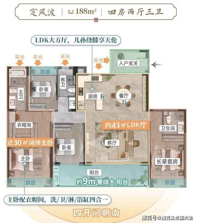四开间朝南的设计,确保了充足的采光,让室内始终保持明亮温暖。7 米长的景观阳台,宛如一个空中花园,不仅延伸了生活空间,还能让人在享受园林美景的同时,放置绿植、休闲桌椅等,容纳生活的琐碎,成为家庭休闲娱乐的好去处。