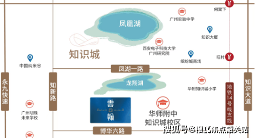 项目距离地铁6号线香雪站约5公里,自驾沿开创大道北行10分钟左右可达。虽然云埔板块目前尚无地铁覆盖,但周边路网密集,三横四纵加十条公交线路支撑日常通勤。早高峰从项目出发,经开创大道转入广园快速,到珠江新城或金融城大约30分钟车程,对于在科学城或天河东工作的上班族来说,通勤节奏还算友好。