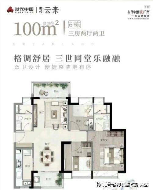 产品类型:建面约80–105㎡三至四房