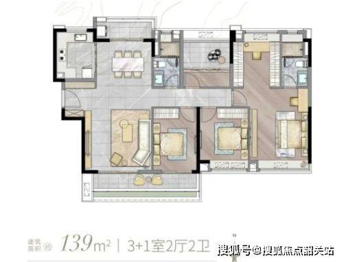 约105㎡四房两厅两卫:奢阔四房,5.6米宽景阳台