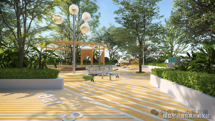 亮点二:架空层打造童享、老年康养、成人运动及室内、外休闲交流四大活动空间,各地块花园连廊互通