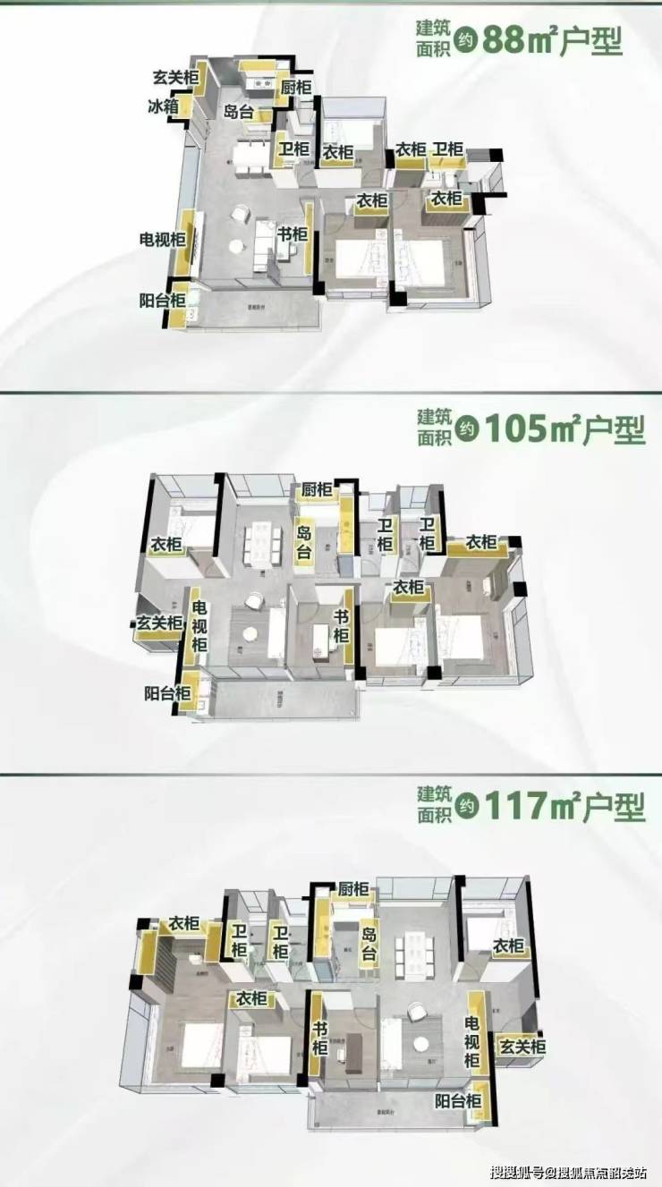 A:主推88㎡(四房)、105㎡(四房)、117㎡(横厅四房),均价5.6万/㎡,总价490万起。