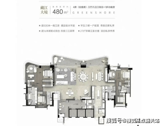 湾流480㎡天幕揽江大平层:4套房+1多功能房,5卫2厅,层高优越,被誉为“珠江豪宅天花板”,专为塔尖人士定制。