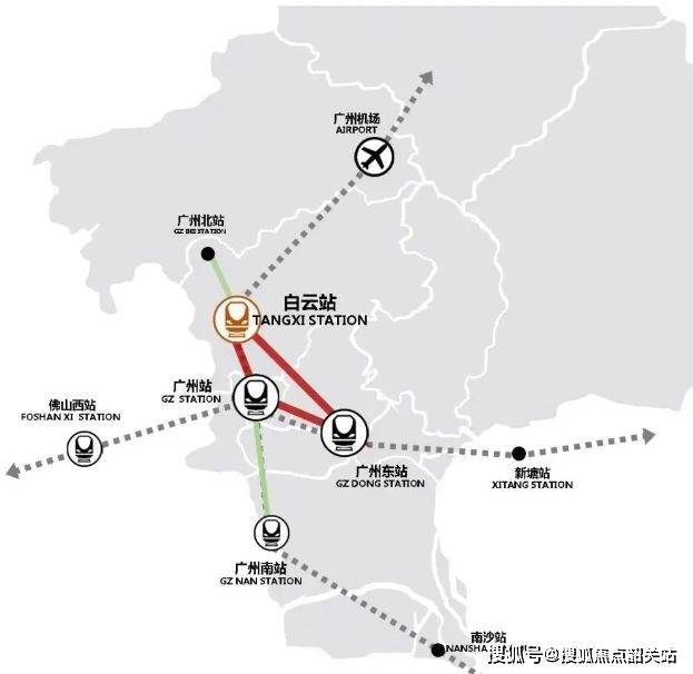 超级交通枢纽:广州白云站 TOD 规模约 263 万㎡,体量 4 倍于广州南站。总投资 440 亿,拟打造 11 台 24 线 。涵盖【2 高铁】京广高铁、广湛高铁;【1 城轨】广清城轨;【6 地铁】8 号线、12 号线、22 号线、8 号线北延段支线、佛山 8 号线、预留东西向新线。多维一体的交通网络,使其成为 “国际交通枢纽湾区门户” 主引擎,链接全国,畅达湾区内外。