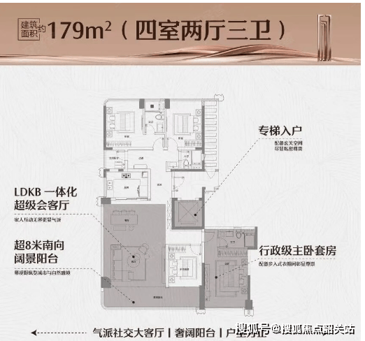 具体到户型细节,入门级的143平方米四房两厅三卫户型,便已展现出非凡的气度。该户型采用专梯专户设计,保障了主人的私密尊贵感。五开间朝南的布局,让客厅与三个卧室均能沐浴在温暖的阳光下,视野开阔,采光极佳。总价约430万起的门槛,为追求高品质生活的精英阶层提供了进入亚艺湖板块的优选方案。而建面约179至240平方米的主力户型,则是项目的核心所在。这些户型拥有超大面宽的阳台,不仅延伸了室内的视觉空间,更成为了连接室内外的天然观景台。南北通透的格局,配合阔绰的餐客厅一体化设计,营造出大气磅礴的家庭社交场域。总价区间在580万至800万之间,精准匹配了城市中坚力量的改善需求。