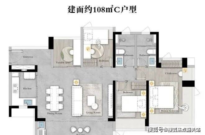 88㎡做三房两卫,108㎡实现四房全明格局