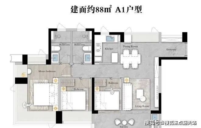 约88㎡三房两卫:在紧凑面积内实现双卫配置,主卧带独立卫浴,次卧与书房灵活分隔,LDK一体化设计提升空间通透感,适合首次置业的年轻夫妻;