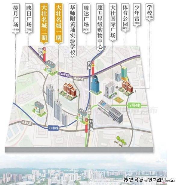 交通方面,大壮名城简直绝了!家门口就有已开通的 6 号线、21 号线苏元站,还有新开通的 7 号线二期。在售的二期离这三条线路站点都不远。像 6 号线暹岗站,步行大概 800 米左右,6 号线能从香雪一路经过黄埔、天河北燕塘、区庄、北京路、黄沙到浔峰岗。7 号线科丰路站,步行约 900 米,它全程经过科学城、老黄埔、大学城、万博 CBD、广州南站、陈村、北滘。6/21 号线苏元站稍远点,步行约 1.8 公里,但也还好啦。这几条线路基本覆盖广州核心区域,能一线直达天河、荔湾、越秀,联通各大重点板块和商圈。在科学城甚至整个广州,三线交汇的地铁大盘都少见,而且这些都已经实实在在能用了,不像有些项目还在规划阶段,大壮名城这交通优势,简直 “躺赢” 啊!
