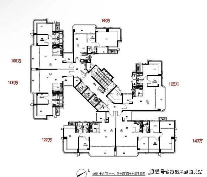 二期共规划 6 栋楼,41 - 47 层高,蝶形楼 + 围合式布局,比起一期,绿化面积更集中,楼间距更宽,住着更舒服,视野也不遮挡。除 1 栋 3 梯 5 户,其余 5 栋都是 3 梯 6 户。首推 D 座,47 层,3 梯 6 户,2026 年底收楼。有 6 个户型,88 平朝西北,2 个 105 平朝西南,122 平和 143 平朝东南,还有一个 105 平朝东北,所有户型层高都是 3.05 米。