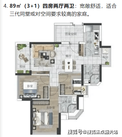 (89㎡3+1 四房两厅两卫户型产品详解)