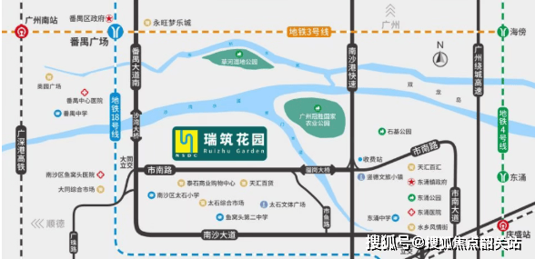 瑞筑花园位于东涌镇市南路北侧,紧邻南沙大道和南沙港快速路,距离南沙港快速约1.7公里,交通便利。项目距离番禺广场地铁站仅需10分钟车程,轻松换乘3号线、18号线和22号线,实现快速直达珠江新城、广州南站等核心区域。此外,项目门前设有公交线路,无缝接驳4号线东涌和庆盛地铁站,进一步提升了出行的便捷性。