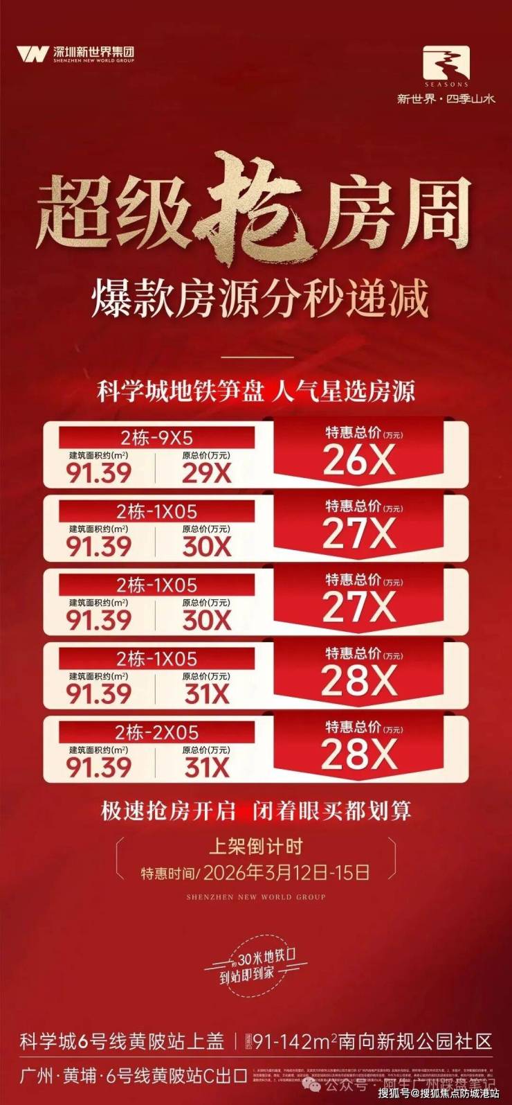 深耕广州,回馈全城!新世界·四季山水凭借科学城地铁上盖的稀缺地段、全南向新规户型的产品优势,成为板块内炙手可热的红盘,目前项目最新均价为31000元/㎡,相比周边同品质楼盘,性价比优势凸显,刚需置业无压力,改善选房更划算,以亲民门槛,圆每一位居者的城市安家梦。为致谢广大购房者的关注与支持,项目特推出专属购房钜惠,多重福利叠加,错过再无,针对预约官方售楼处客户,可享专属看房福利,解锁置业惊喜: