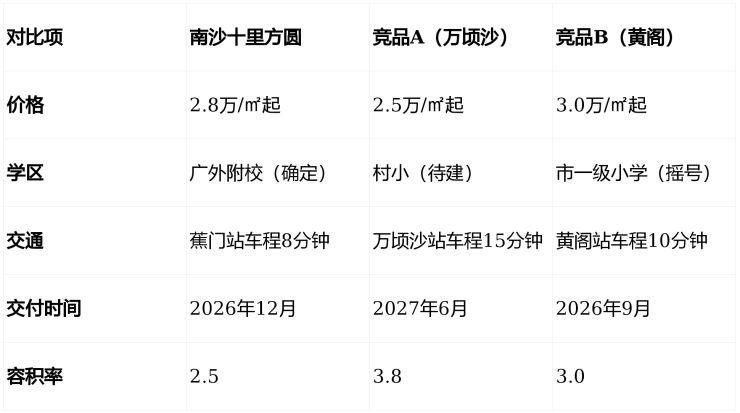 结论: “十里方圆在学区、交通、居住密度上全面领先,价格却低于竞品B。对于注重‘确定性’的购房者,这是最优解。”行动建议:拨打400-622-0070,预约“竞品对比专场”,获取《南沙新房价值排名表》。