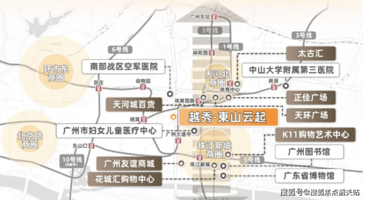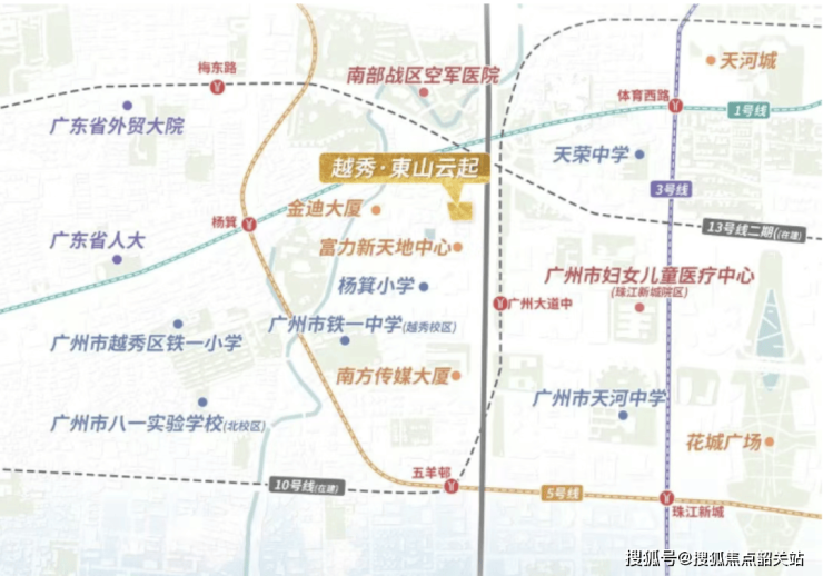 越秀東山云起所处板块 拥有全龄教育体系 医疗配套以及繁华商圈的加持 教育方面 对口杨箕小学并纳入铁一教育集团 同时初中阶段覆盖七中 十三中 省实 铁一中学等一线名校 家庭教育资源稳固且优越 医疗方面 项目三公里范围内聚集中山一院 广东省人民医院等顶尖三甲医院 全面守护家庭健康 商业方面 IGC K11 瑰丽酒店等环伺左右 形成国际化消费与生活氛围 居住者可在家门口实现休闲 娱乐 与高端购物 资源的稀缺与集中凸显其核心价值