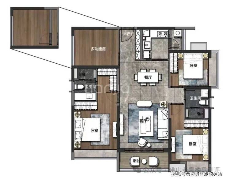 刚改主力:建面约 97㎡ 3房两厅两卫,LDKB 一体化大方厅设计,6-7 米南向观景阳台,空间利用率拉满,适配二胎家庭全周期居住需求。