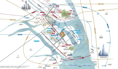 项目雄踞南沙万顷沙,地处粤港澳大湾区几何中心,承载国家级新区、自贸试验区等多重战略红利。交通优势显著:临近深中通道广州出口(2024 年 6 月通车),半小时切换广深生活;紧邻南沙枢纽站(规划 14 站台 29 条线路),媲美广州南站,半小时畅达湾区核心;地铁 18 号线延长线十涌站(建设中)距项目约 1.8 公里,4 站速达天河 CBD,串联四大核心商圈。
